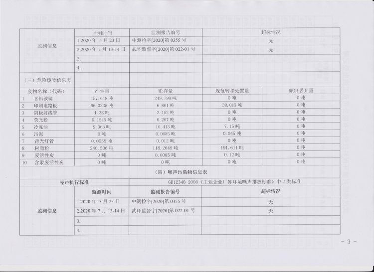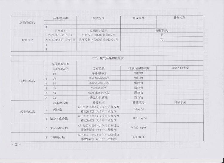 2020年第三季度环境信息公开表