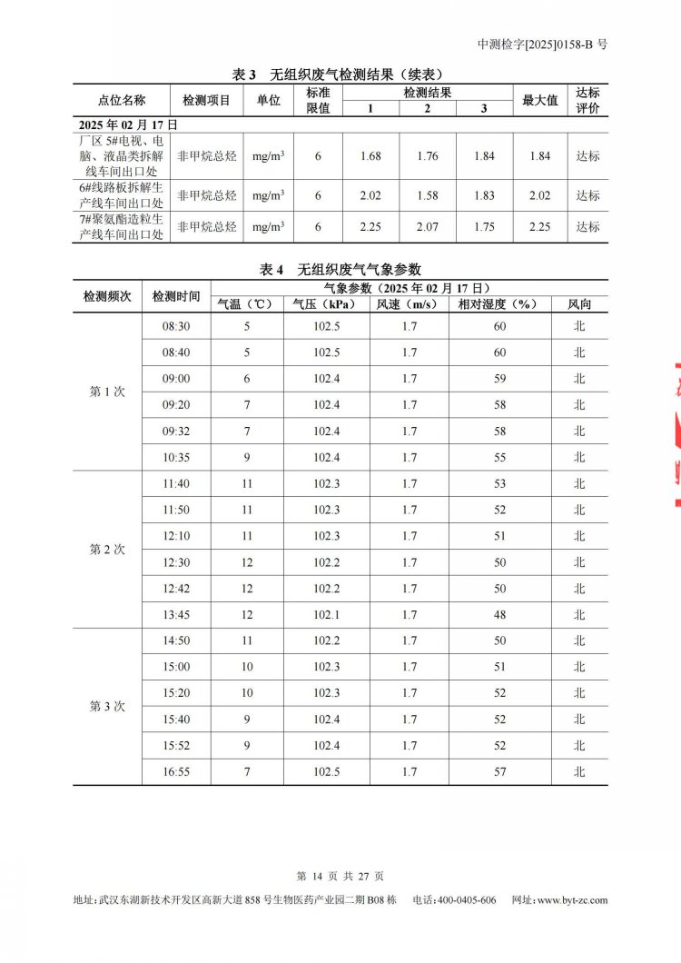 2025年第一季度的环境信息公开表