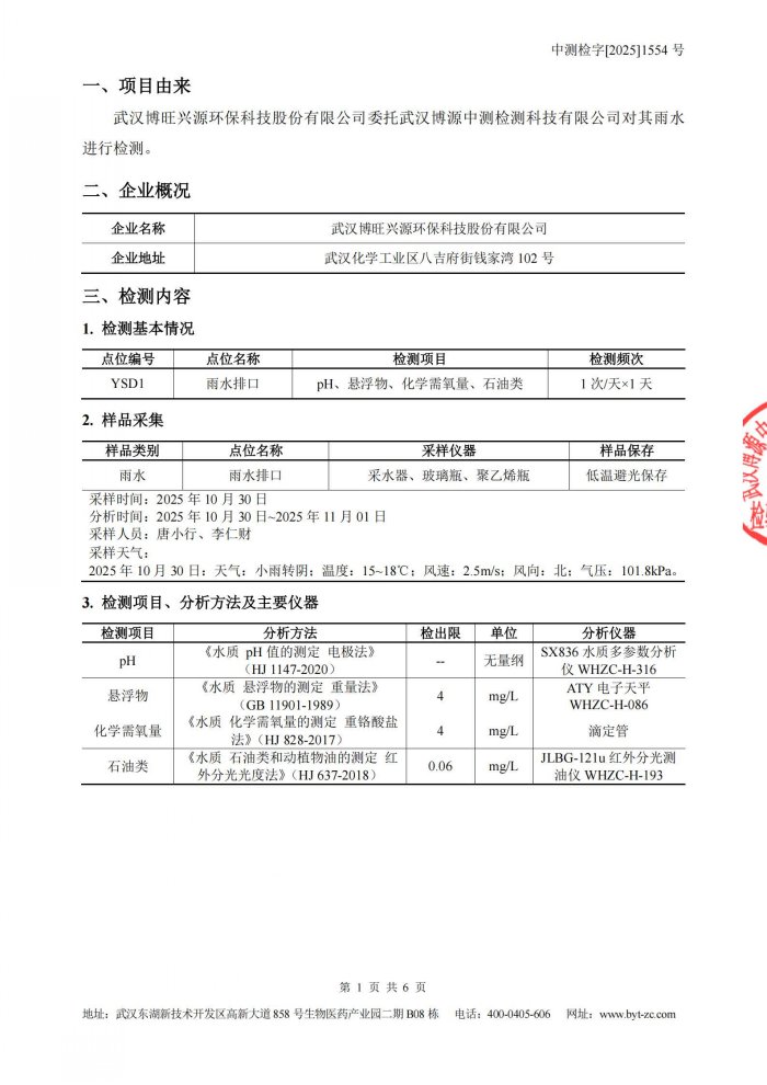 10月雨水监测报告